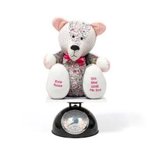We can use a range of items to create our weighted keepsakes. From baby grows, vests and bibs too your little one’s first dresses. Simply choose your favourite birth weight keepsakes, post us your clothes and we will create a special weighted bear or animal that you can treasure.